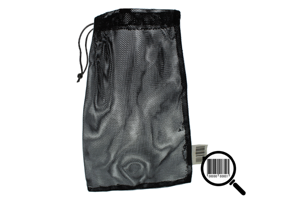 Sacchetto per prelievo incasso da Distributori automatici, casse self e sistemi di contazione moneta, in materiale forato per permettere la fuoriuscita di materiali presenti nella cassa quali, polvere, caffè, zucchero etc., con Etichetta Bar-code a codice unico da utilizzare con software che hanno funzionalità di identificazione sacchetto incasso come ad esempio ZIWI